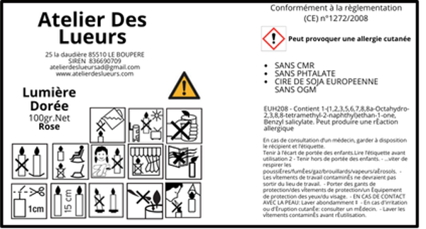 Cire de soja végétale sans OGM. Parfum de Grasse garantie sans CMR ni Phtalates. Mèche en coton. Non-testé sur les animaux. Contenant réutilisable.